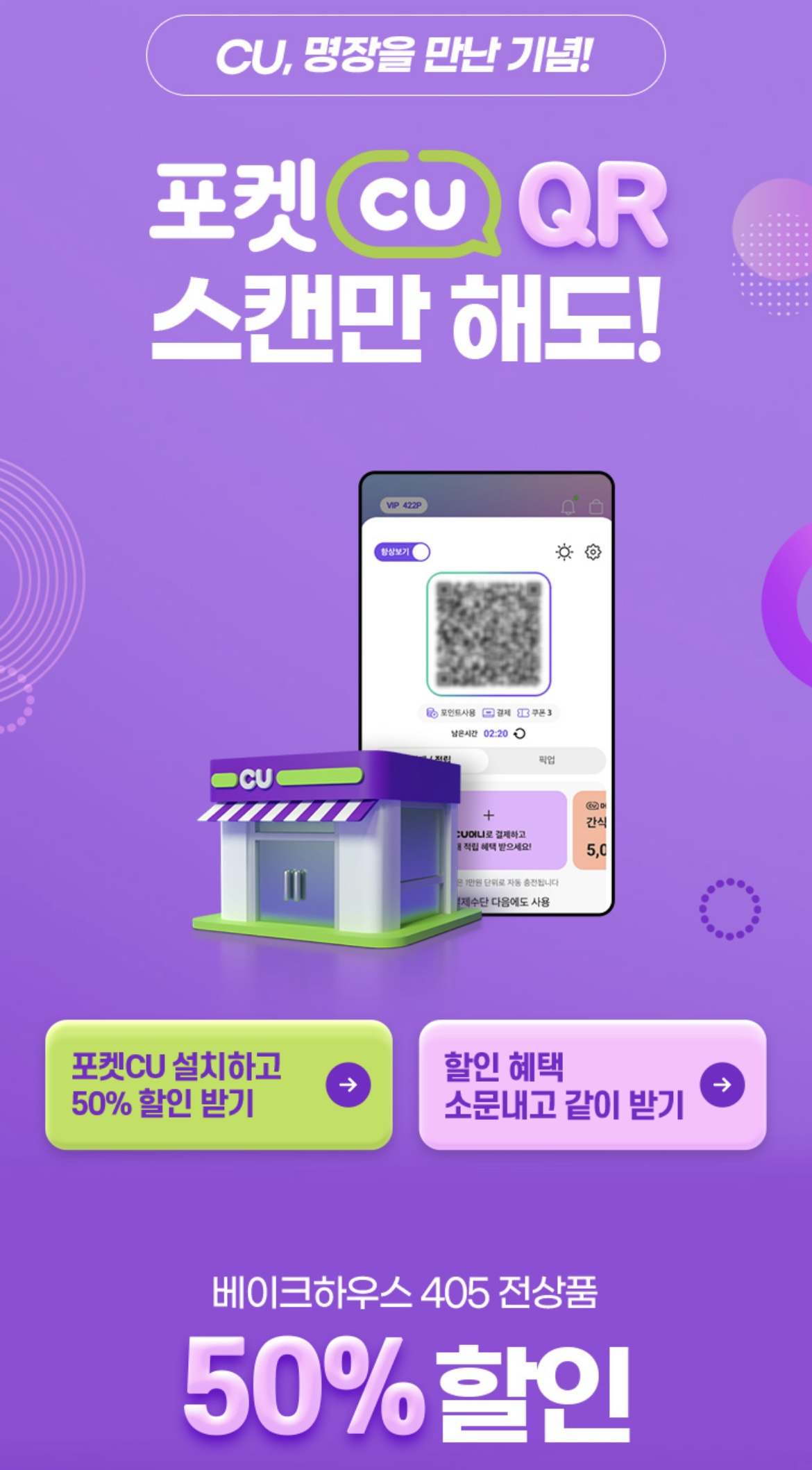 결제/적립 QR코드만 보여 주시면 자동으로 50% 할인이 들어가요.