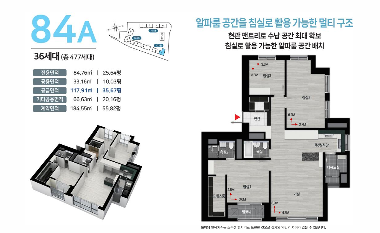 - 전용면적 59~84㎡: 실수요자가 가장 선호하는 구간