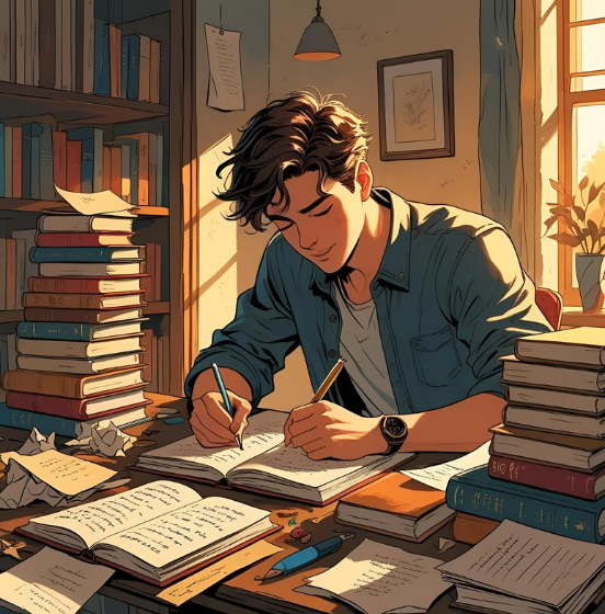 하루의 일과를 마치고 책상 앞에 앉아 조용히 글을 써 내려갑니다.